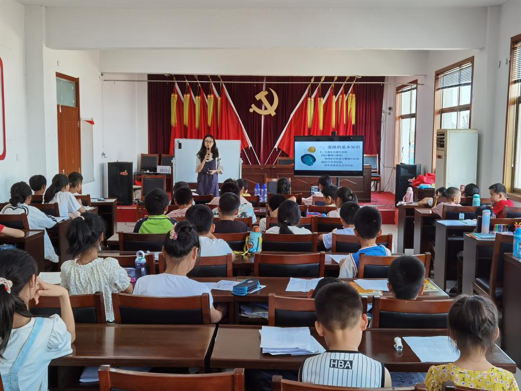 大学生支教团正在普及交通知识。(新华社记者杨文 摄)