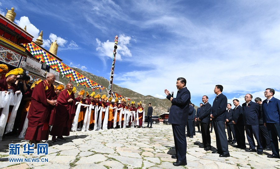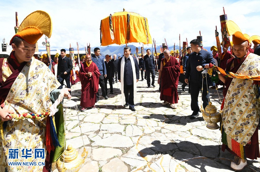 7月21日至23日,中共中央总书记、国家主席、中央军委主席习近平来到西藏,祝贺西藏和平解放70周年,看望慰问西藏各族干部群众。这是22日下午,习近平在位于拉萨西郊的哲蚌寺考察。 新华社记者 谢环驰 摄