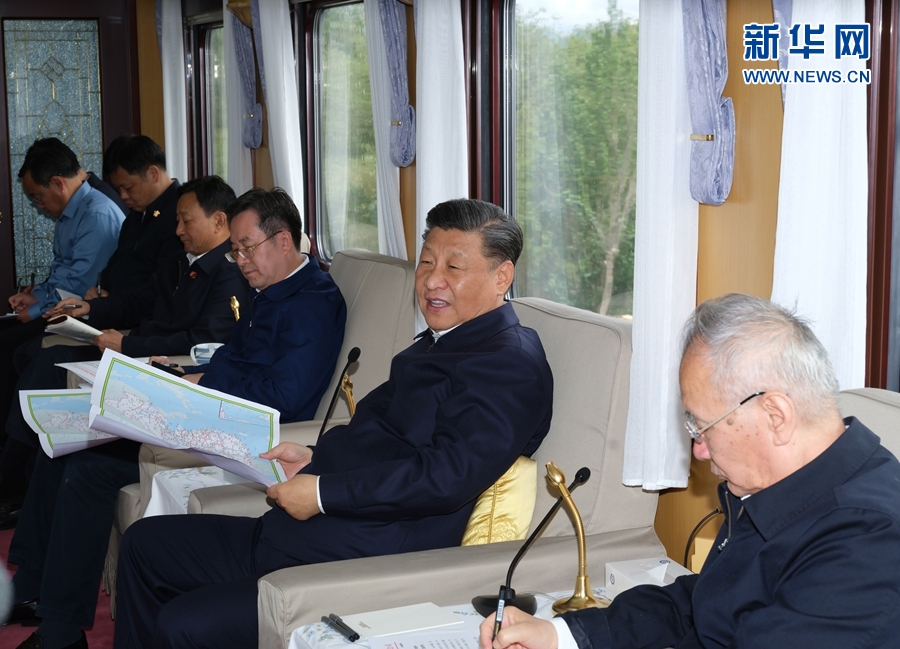 7月21日至23日,中共中央总书记、国家主席、中央军委主席习近平来到西藏,祝贺西藏和平解放70周年,看望慰问西藏各族干部群众。这是22日上午,习近平乘坐专列实地察看拉林铁路沿线建设情况,深入研究有关问题。 新华社记者 李学仁 摄