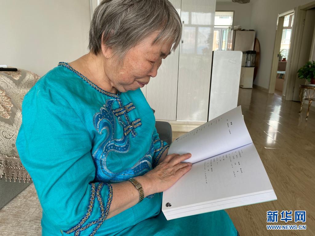 尤金兰在翻看自己编写的赫哲语教材(7月10日摄)。新华社记者 侯鸣 摄