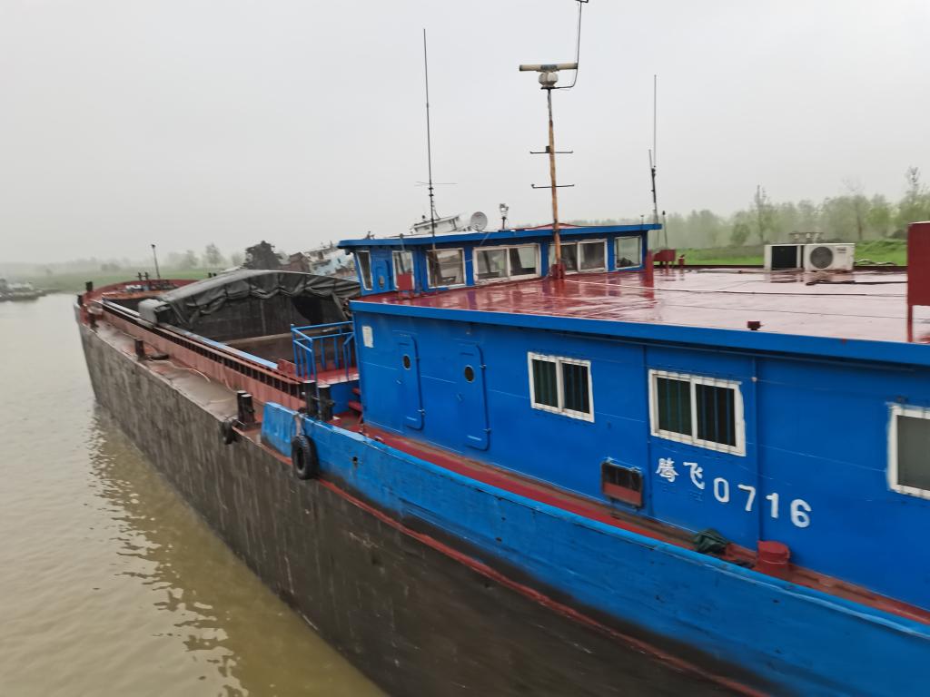 记者在长江上见到了这艘由小型运输船改装而成的涉案“隐形”采砂船,发现其抽砂泵隐藏在船舱内,只有在非法采砂作业时才将抽砂管安装起来。
