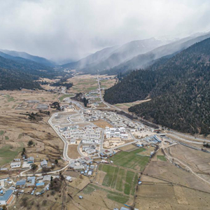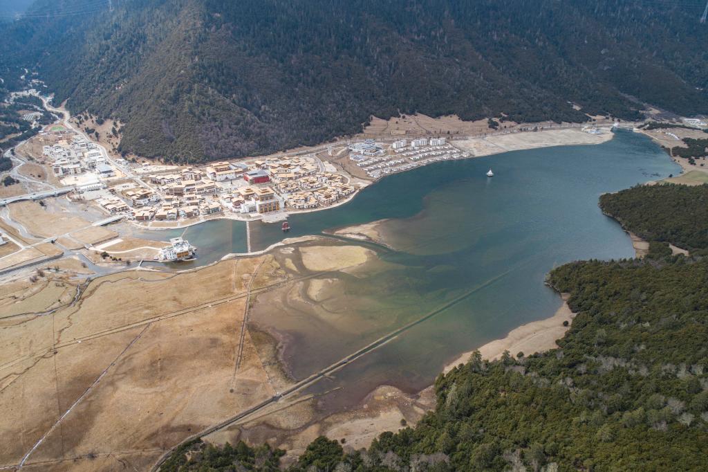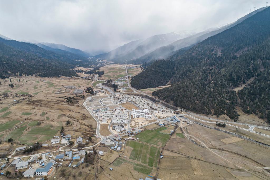 这是川藏公路旁的鲁朗国际旅游小镇风光(4月2日摄,无人机照片)。新华社记者 孙非 摄