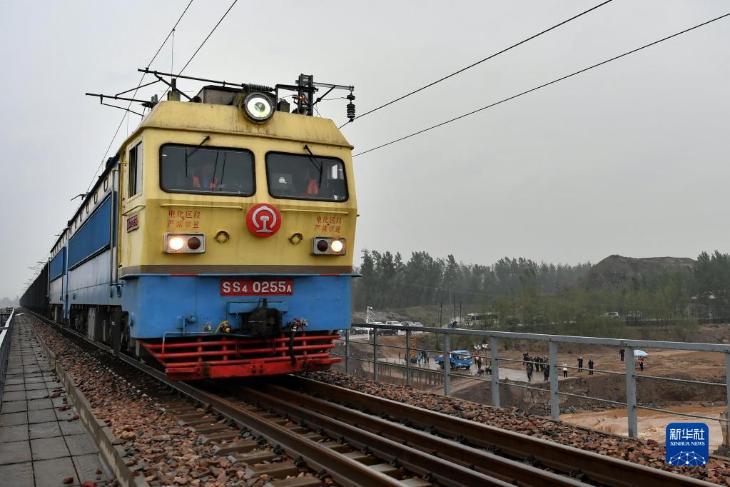 10月14日,山西境内受损的南同蒲铁路双向恢复通车后,列车驶过南同蒲铁路昌源河大桥。新华社记者 曹阳 摄
