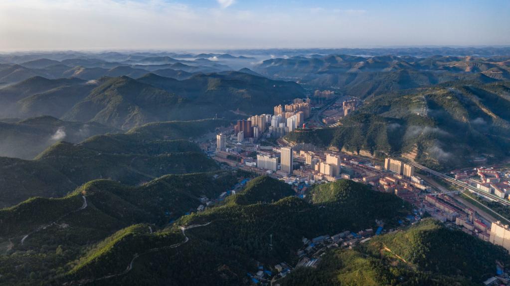 青山环抱的延安市安塞区城区。新华社记者 陶明 摄