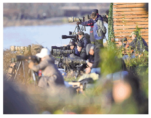 摄影爱好者在南昌高新区五星白鹤保护小区拍摄候鸟(2020年12月21日摄)。新华社记者万象摄