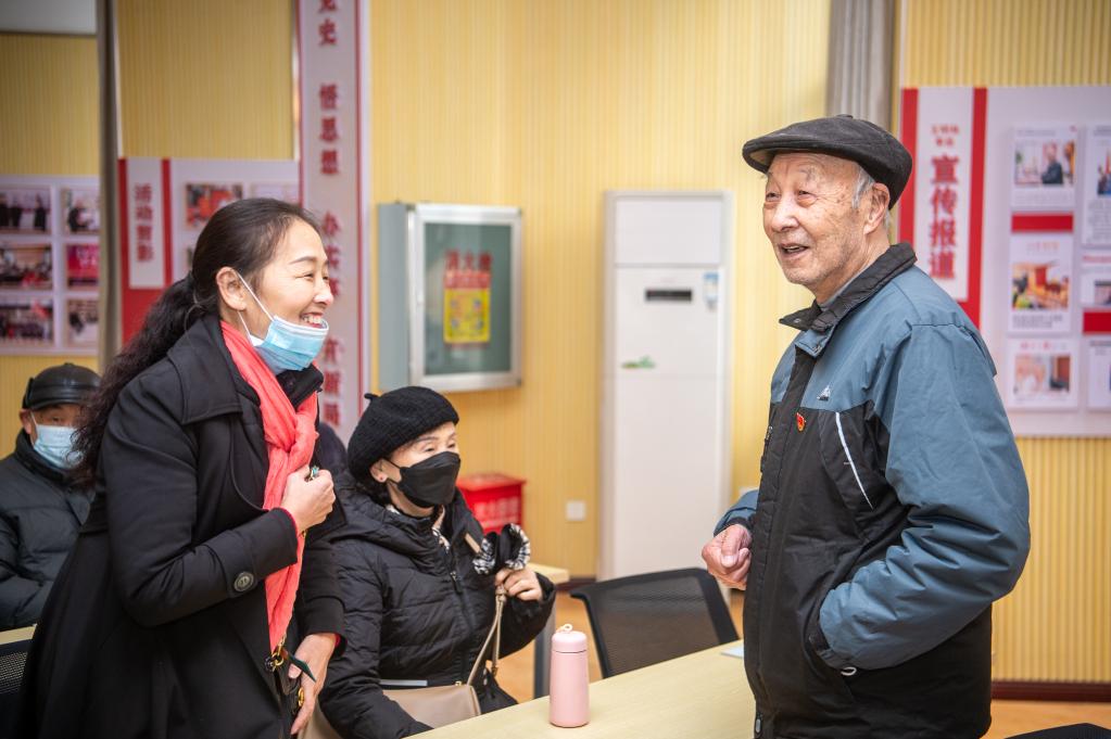 2021年12月31日,王明林同社区居民交流党史学习心得。新华社发(伍志尊摄)