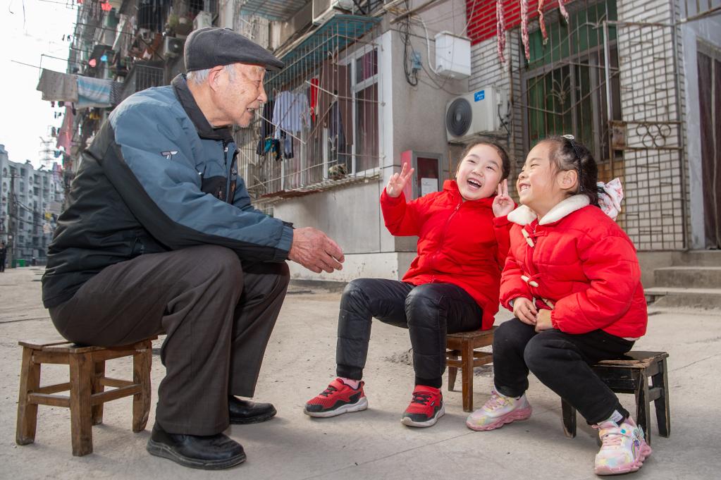 2021年12月31日,王明林在给社区的小朋友讲党史故事。新华社发(伍志尊摄)