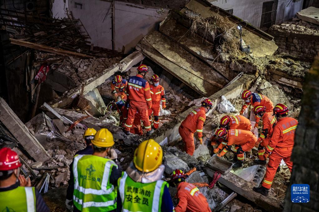 参与救援的消防指战员告诉记者,他们赶到现场时看到食堂所在的一栋二层高小楼已被夷为平地,砖块、预制板、房梁等散落一地。“坍塌房屋使用的是沙砖,建造年代较为久远,整体强度相对较弱。”
