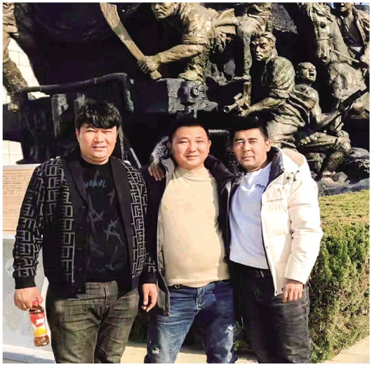 ▲赵序磊(中)与曼苏尔·帕塔尔(左)、买买提·努尔东(右)的合影照片。(资料照片)