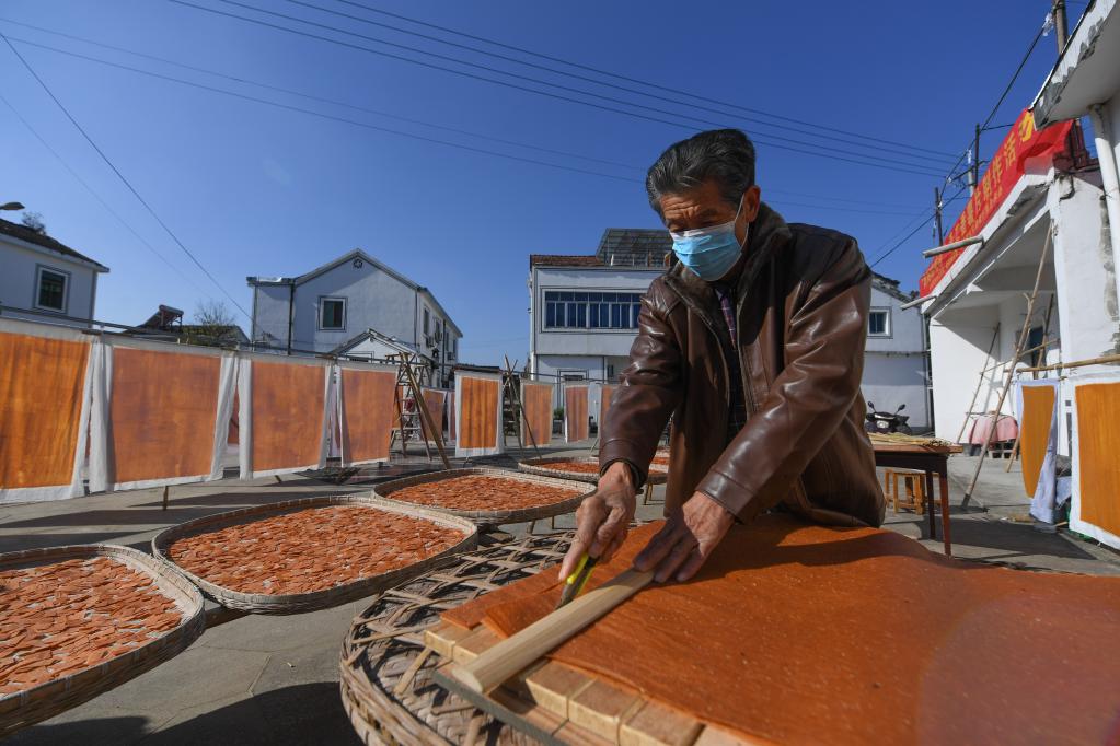 图为诸暨市赵家镇泉畈村农户晒制番薯干。 新华社记者 徐昱 摄