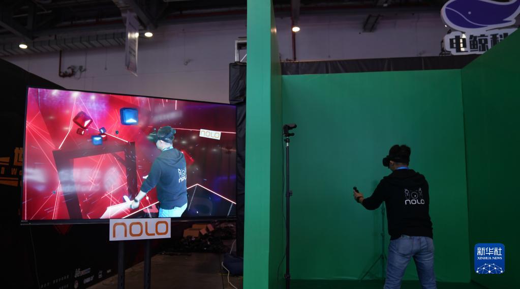 观众在2020世界VR产业大会VR/AR产品和应用展览会上体验AR游戏(2020年10月19日摄)。新华社记者 胡晨欢 摄