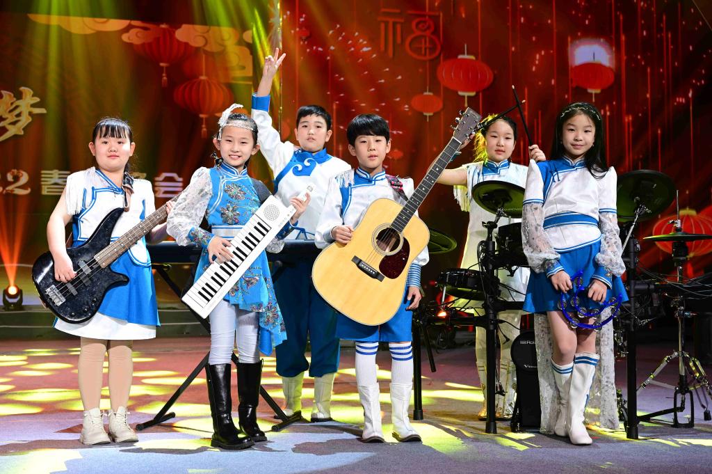在今年的通辽市手机台春晚上,顺德乐和5名小伙伴组成“追梦少年”乐队,演唱了原创歌曲《美好的时代》。以前寒假总少不了要去补习班的6名小学生,用自己喜欢的方式度过了“双减”后的首个寒假,组乐队、上春晚,他们说“这个寒假别样精彩”。