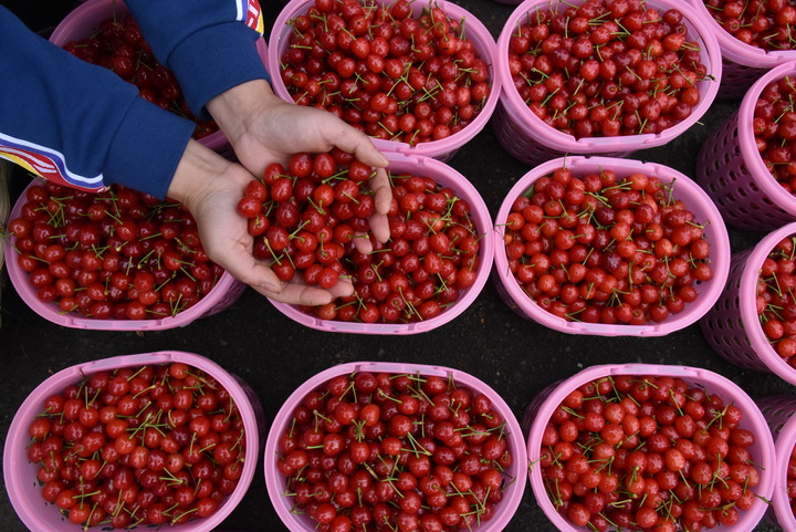 贵州省毕节市纳雍县陶营村近5000亩玛瑙红樱桃迎来成熟季。 新华社记者 李凡 摄
