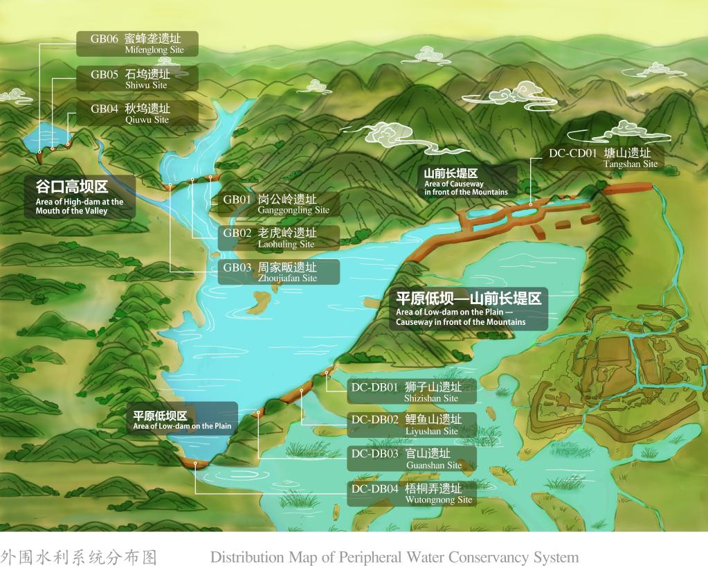 良渚古城外围水利系统分布图。杭州良渚遗址管理区管委会 供图。