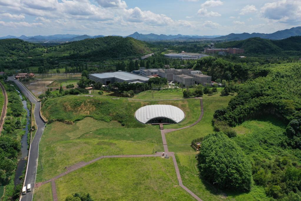 7月6日拍摄的良渚古城遗址老虎岭遗址公园(无人机照片)。新华社记者黄宗治 摄
