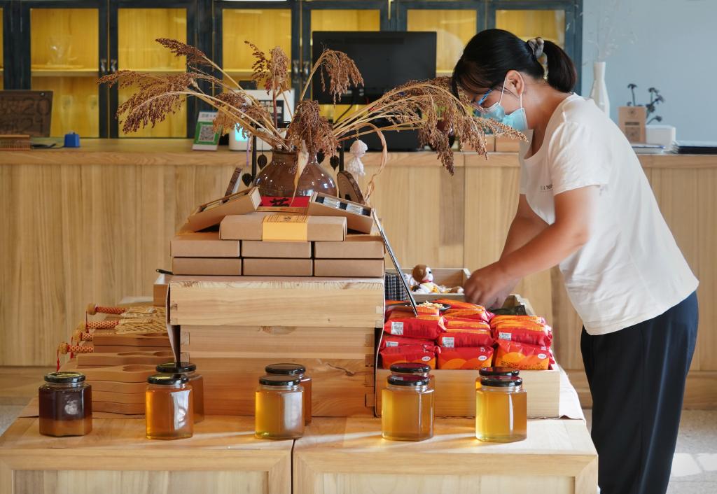 荒废已久的老供销社升级改造后,成了文创品牌“碧山工销社”的连锁店,也是“乡间杂货铺”,这里不仅销售文创产品,还为村民设置了农产品寄售柜台。麦秸秆编织的蒲扇、当地产的核桃与花椒……均由村民自己定价,目前,共有34位村民在这里寄售自家产品。72岁的村民赵小香在这里拥有一个寄售格子,格子里卖出的核桃,都会如数记到她的账上。