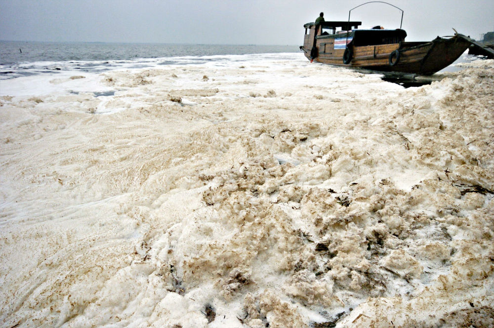 这是我同事龙弘涛2006年拍摄的一张照片,那一年洞庭湖区经历了一场30多年来最严重的干旱,水位骤降至30多年来历史最低点,湖水自净能力降低,再加上湖区大大小小上百家造纸、化工企业的违规排放,造成洞庭湖污染严重。据统计,当时环洞庭湖的益阳、岳阳、常德三市共有造纸厂101家,除少数大型企业采用了废水处理设备外,绝大多数企业都没有按标准要求配套建设环保设备,废水几乎未经任何处理便直接排入洞庭湖。乱排污造成洞庭湖区生态环境的破坏和水质恶化。