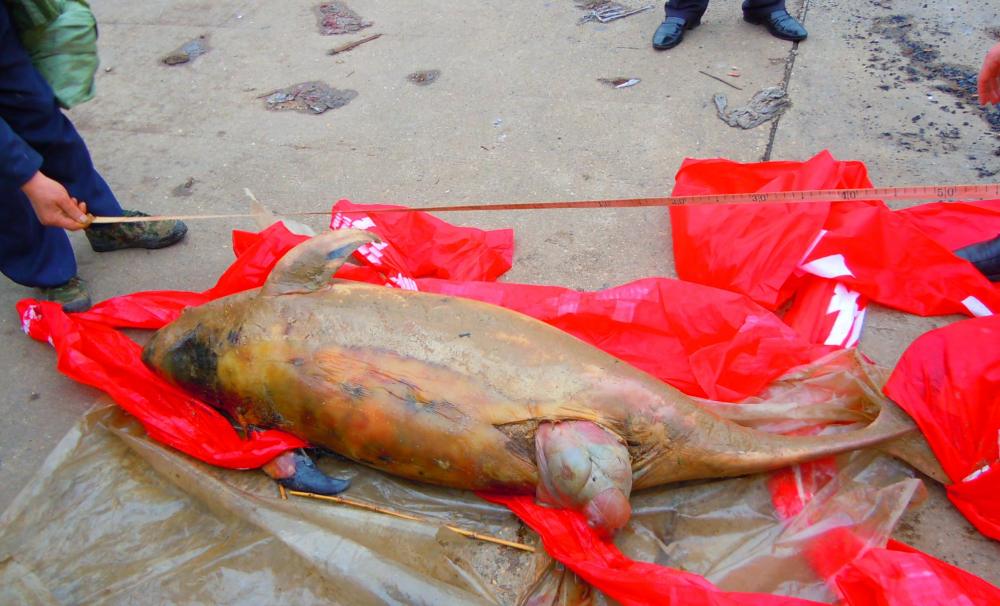 ↑ 2012年4月13日,湖南岳阳雁子洲发现一具江豚尸体(资料照片)。