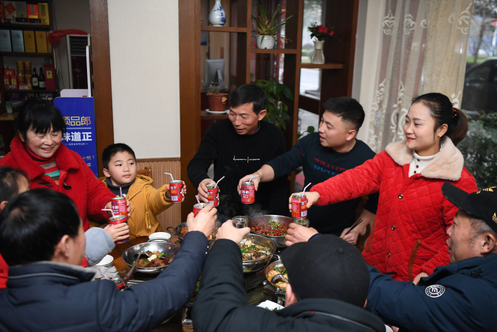 ↑ 2021年2月11日,石仲芳一家在吃团圆饭。