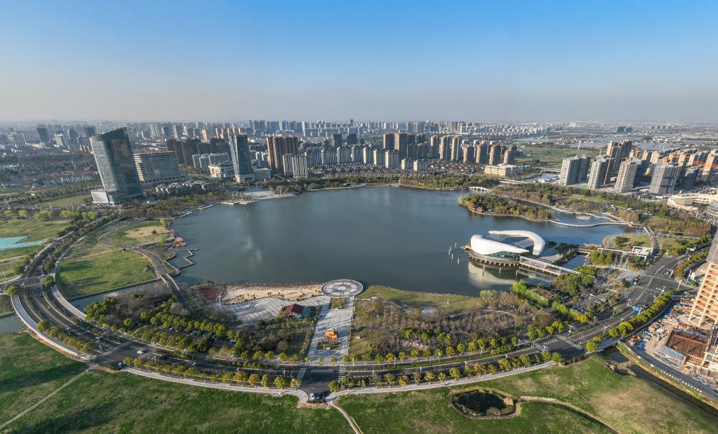 这是3月14日拍摄的太仓市天镜湖公园(无人机照片)。