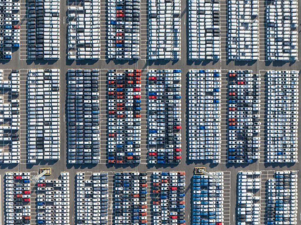这是3月13日拍摄的江苏太仓港海通汽车码头堆场(无人机照片)。
