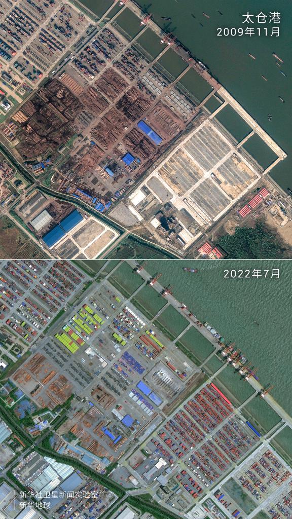 这是3月13日拍摄的江苏太仓港码头(无人机照片)。
