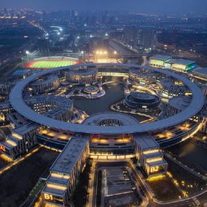这是3月14日拍摄的太仓市娄江新城西交利物浦大学太仓校区夜景(无人机照片)。