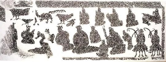 形制的变化增强了羌笛的表现力,快速提升了它的音乐地位。早在魏晋时期,羌笛成为庙堂、宴飨之乐的协律乐器。《晋书·律历上》说:“飨宴殿堂之上,无厢悬钟磬,以笛有一定调,故诸弦歌皆从笛为正。”羌笛被魏晋人广泛用于“杂引、相和诸曲”,逐渐走入文人的日常生活,变成他们消遣娱乐的节目,同时也成为他们创作的重要题材,诞生了马融《长笛赋》、李尤《笛铭》、曹丕《善哉行》等众多杰作。到了南北朝,诗人将羌笛写入边塞诗,如戴皓《从军行》“羌笛管中嘶”,张正见《陇头水》“羌笛含流咽”等,羌笛又成为诗人展现塞外风情的文化符号。