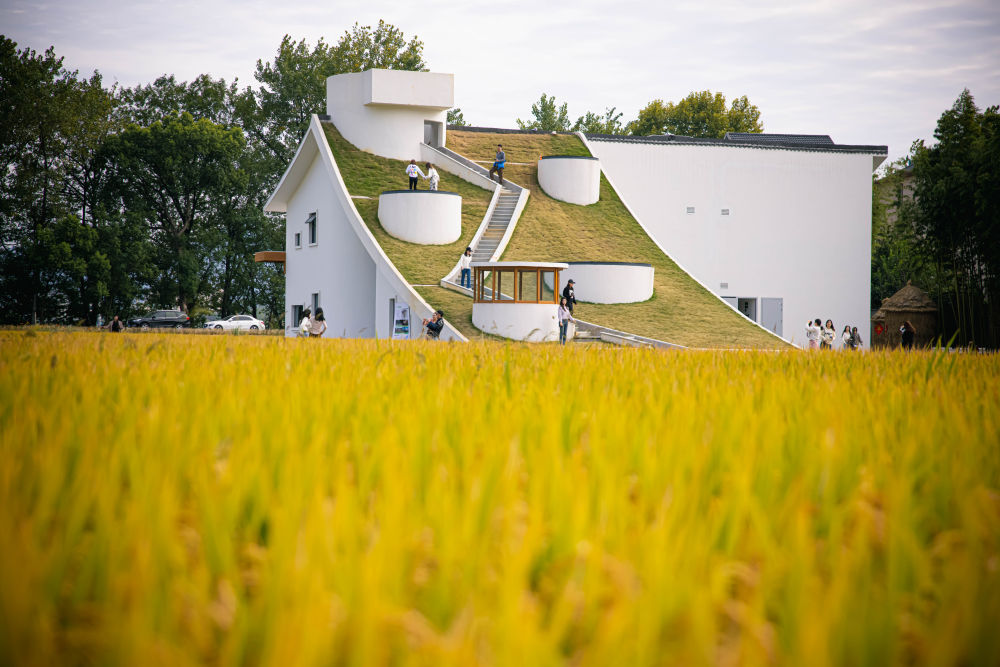 这是2022年10月25日拍摄的浙江省桐庐县桐君街道梅蓉村的稻田与乡村会客厅。新华社记者 江汉 摄