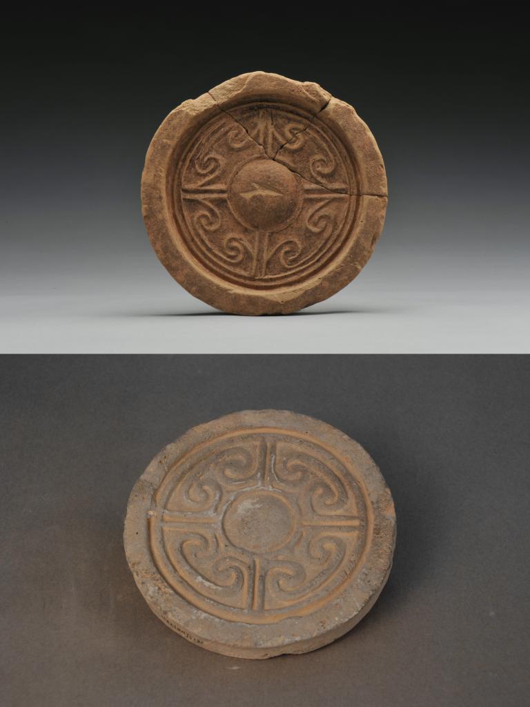 下:洛阳白草坡东汉帝陵陵园出土的瓦当。(洛阳市文物考古研究院供图)
