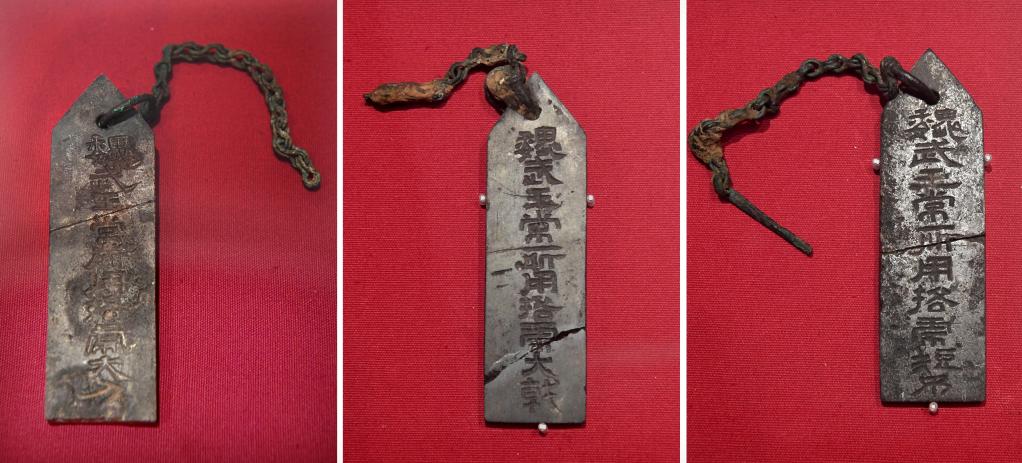 2009年11月11日,考古队员清洗一块石牌残片后发现其上有“魏武王常所用”的字样,领队潘伟斌非常重视,安排大家立即对近日出土的其他石牌残片进行清洗,发现恰有残片能与之组成一枚完整圭形石牌,刻有“魏武王常所用挌虎大戟”。