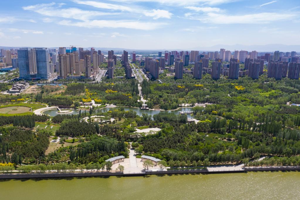 大同市平城区的御河生态林一角。新华社记者杨晨光 摄