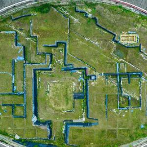 7月20日拍摄的位于成都体育中心内的东华门遗址公园遗址区(无人机照片)。新华社记者 沈伯韩 摄