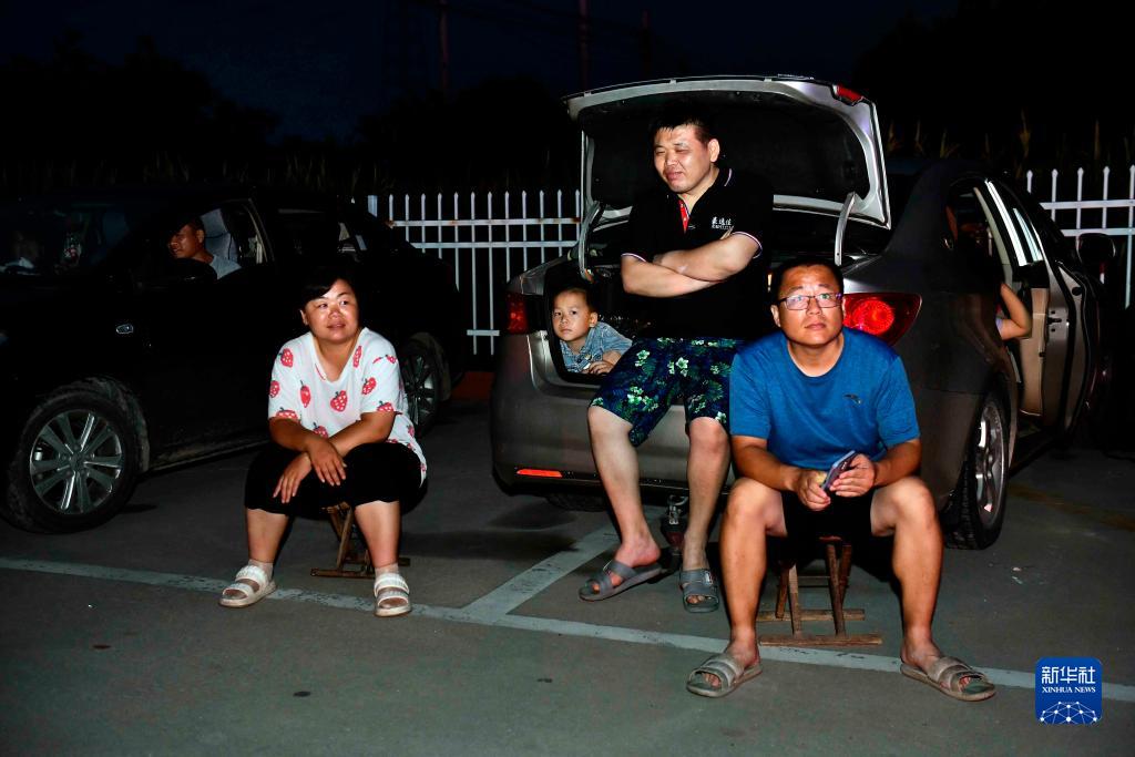 8月6日,平原县王打卦镇群众在户外有序避险。新华社记者 郭绪雷 摄