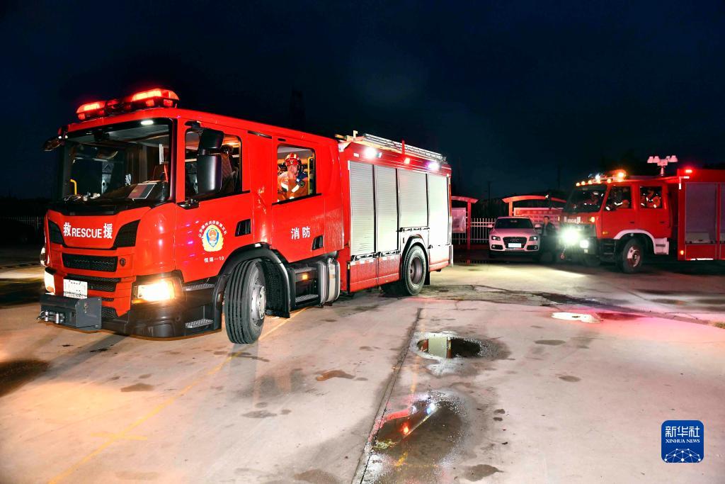 8月6日,应急救援人员在平原县王打卦镇集结。新华社记者 郭绪雷 摄