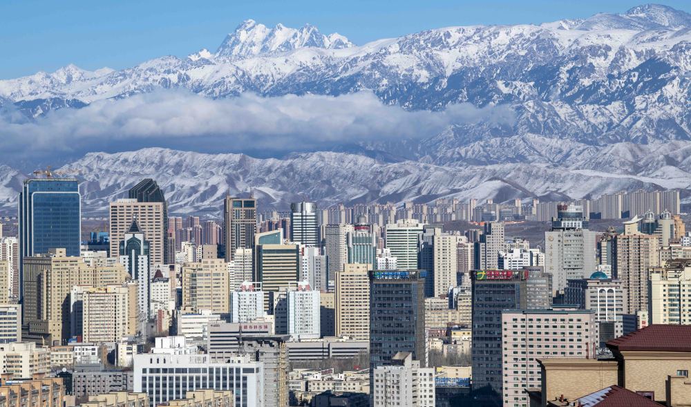 天山脚下的乌鲁木齐市城区一角。新华社记者 胡虎虎 摄