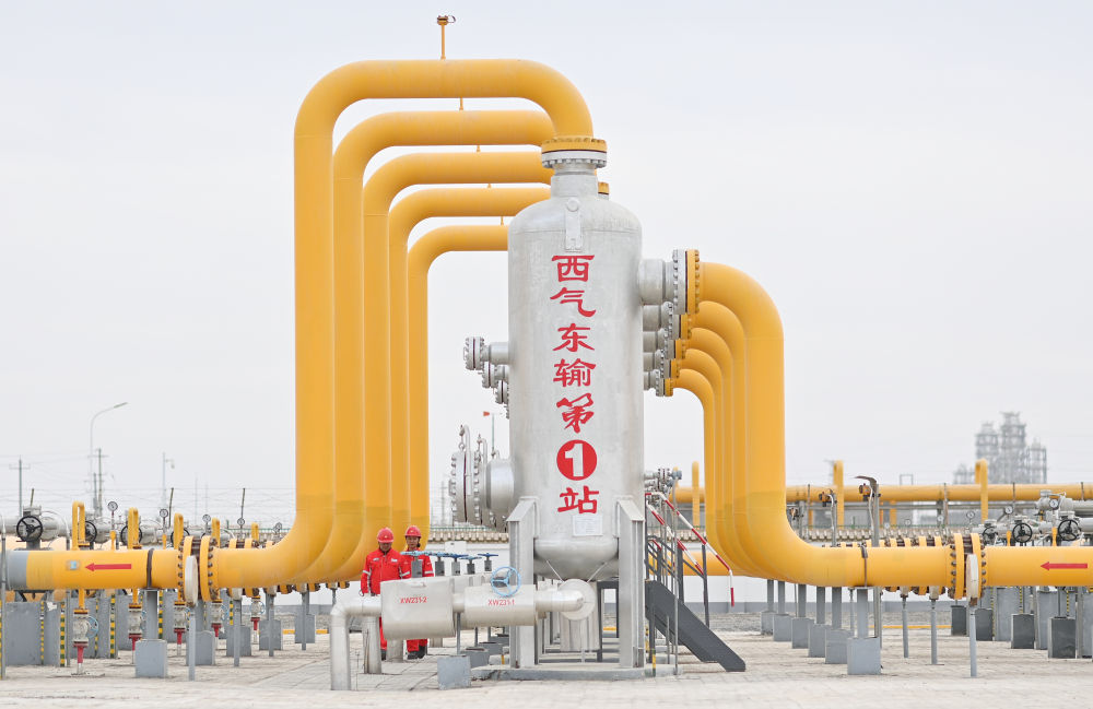 输气工在塔里木油田西气东输第一站检查管线运行情况(2023年2月6日摄)。新华社记者 李响 摄