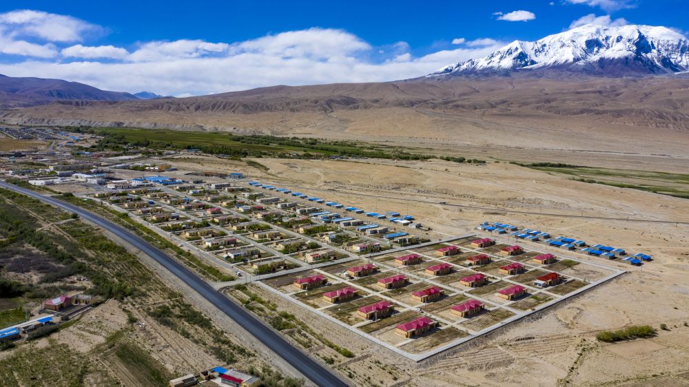 新疆帕米尔高原上的一处村庄新貌(2020年6月10日摄,无人机照片)。新华社记者 胡虎虎 摄