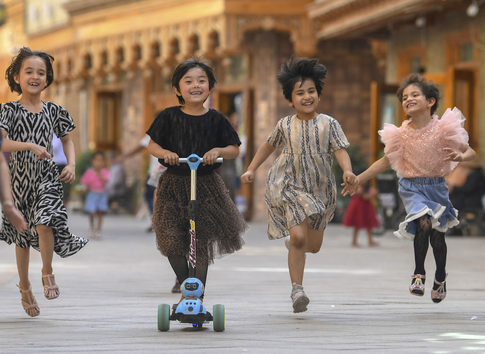 孩子们在新疆和田市“团城”的鸽子巷玩耍(2020年5月27日摄)。新华社记者 沙达提 摄