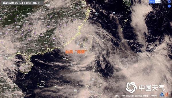 9月4日13时45分台风“海葵”卫星云图。(来源:国家卫星气象中心)