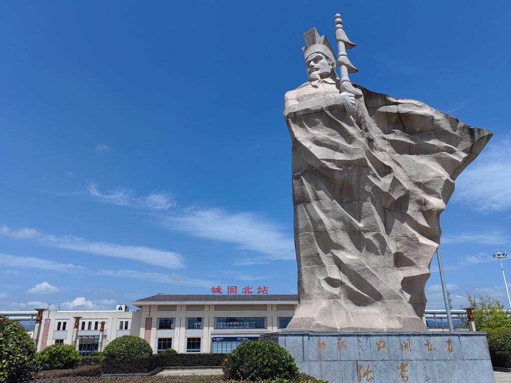 张骞故里如今是西成高铁的站点。出城固北站,11.8米的张骞巨型雕像赫然矗立。这位西汉时期的探险家、外交家着汉服,持节杖,深邃的目光向西瞻望;英姿勃发的体态似守护家乡,亦似迎接又一次出发。