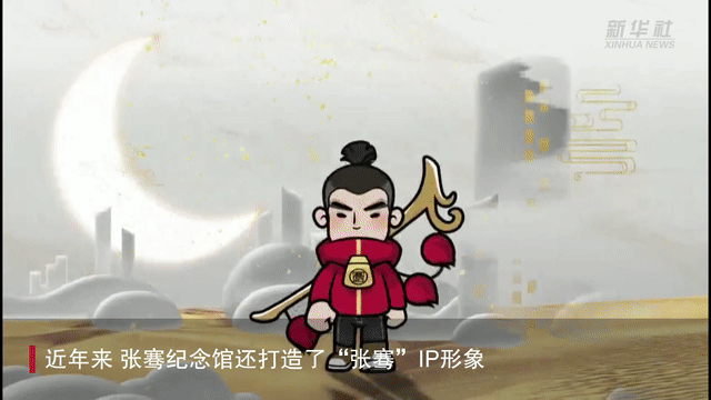 “围绕设计研发的张骞IP形象,我们制作了张骞动画、明信片等文创产品。”张骞纪念馆副馆长方芳说,“我们还上线了32套‘张骞’表情包,再结合馆内各类展陈、沙盘等途径,让年轻一代了解张骞,了解丝绸之路的故事。”