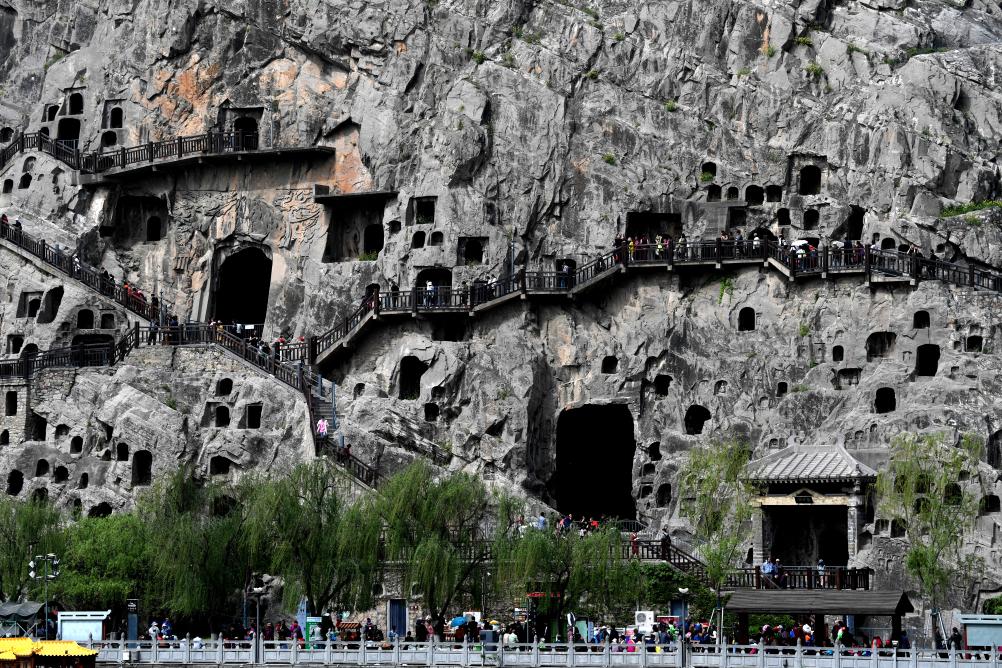 游客在龙门石窟参观游览。新华社记者 李嘉南 摄