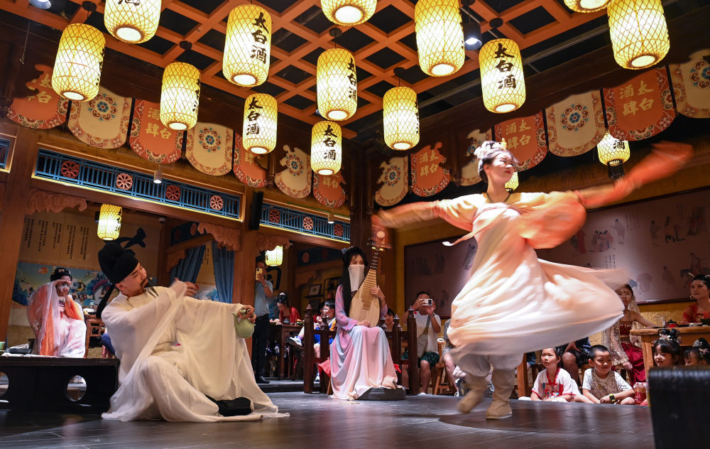 西安大唐不夜城,从写满诗词的灯饰下穿行,与唐装“仕女”擦肩而过,“李白”正于灯火阑珊处邀游客吟诗作对。走进“长安十二时辰”主题街区,恍若梦回大唐,数十台唐文化主题演艺一步一景。历史文化融入主题演艺,文旅消费活力激增。