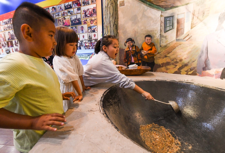 而今,土块房变成3间大砖房,院子中间盖起二层小楼,开办了阿尼帕事迹教育展馆。家里一口直径1.2米的大铁锅,默默讲述着阿尼帕妈妈和这个大家庭的传奇。