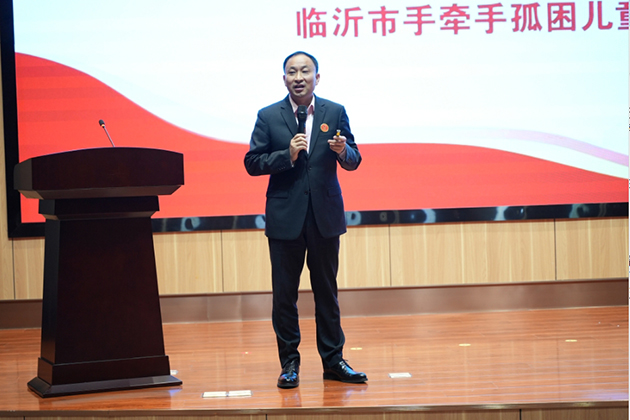 临沂市关工委主任朱绍阳在致辞中表示,在推进经济社会发展进程中,临沂市委市政府及时研究解决关心下一代工作中遇到的困难和问题,真正做到了“有求必应、有请必到、有事必办”。在这种良好的环境下,临沂市关工委坚持把培育和践行社会主义核心价值观与弘扬沂蒙精神紧密结合,于2018年4月,动员部分社会爱心人士,成立了临沂市手牵手孤困儿童心理辅导志愿服务团,启动实施了爱心志愿者与孤困儿童“手牵手圆梦行动”。5年多来,全市12个县区、156个乡镇街道全部成立分团,志愿者队伍壮大到8000多人,精准帮扶各类孤困儿童5317名,取得了替政府分忧、为社会解难、帮家庭纾困的多重成效。