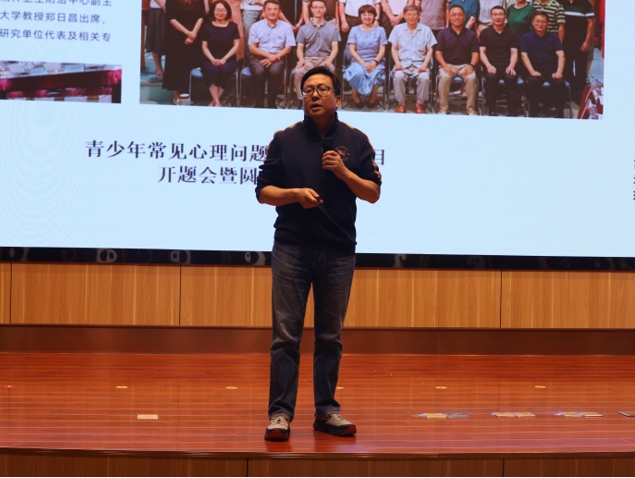 图片说明:北京师范大学教授、中国社会心理学会常务理事郑日昌正在演讲