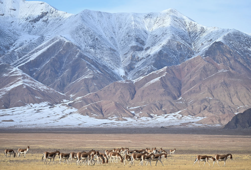 2023年10月16日在新疆阿尔金山国家级自然保护区拍摄的藏野驴(无人机照片)。新华社记者 李响 摄