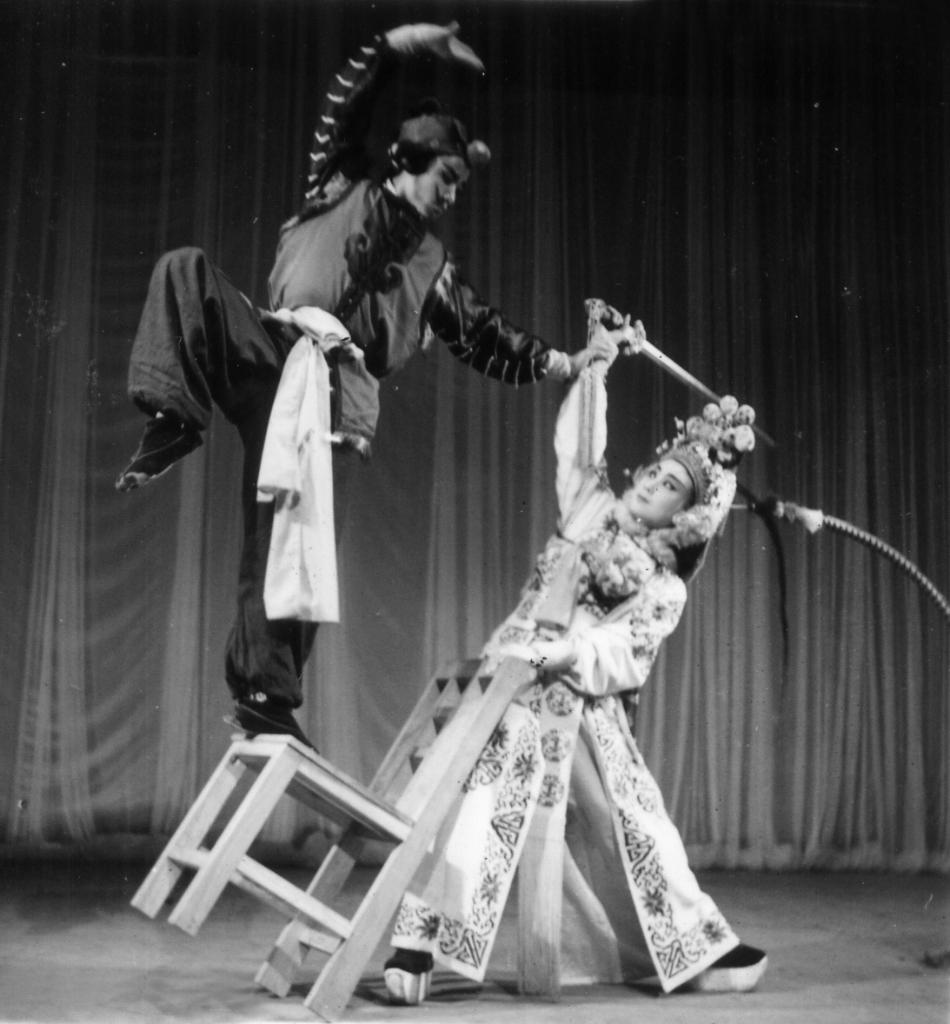 在宜黄县文化馆,一张唐光明站在倾斜的椅子上和对手演员过招的剧照,定格了那个神采飞扬的瞬间。