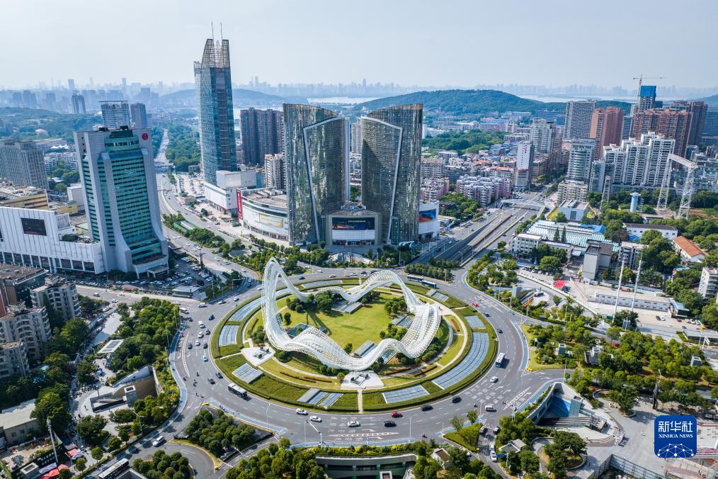 武汉光谷广场综合体(2023年6月14日摄,无人机照片)。新华社记者 伍志尊 摄